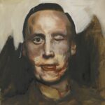 Philip Gurrey est diplômé de la prestigieuse école d’art de Glasgow. Il se consacre principalement au portrait, explorant des visages torturés, meurtris ou marqués par la souffrance : mâchoires et nez cassés, yeux au beurre noir, bouches tuméfiées, cuirs chevelus scalpés. Ses œuvres évoquent un véritable champ de bataille où les victimes, malgré leurs blessures, esquissent parfois un sourire ou gardent un œil ouvert, signe de la persistance de la vie. Parmi ses références, on retrouve les photographies de victimes de la Seconde Guerre Mondiale par Percy Hennell, les peintures de guerre d’Otto Dix ou encore celles de Francisco Goya, où la déformation des corps traduit la brutalité et la douleur. Bien plus qu’une peinture de guerre, le travail de Philip Gurrey agit comme une fenêtre sur l’âme, révélant les blessures inconscientes qui, bien que latentes, peuvent resurgir à tout instant. Les cicatrices physiques deviennent ainsi les stigmates visibles de traumatismes psychologiques profonds.