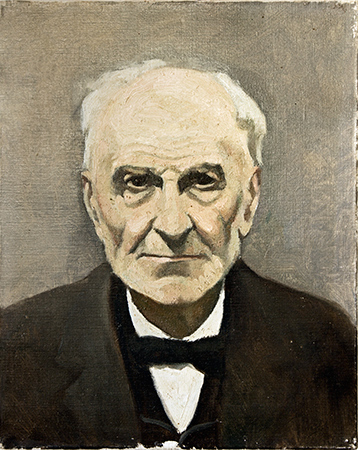 La spoliation des oeuvres d’art par les nazis sous l’Occupation est au coeur de ce travail. Constitué d’un portrait peint à l’huile et de cadres savamment retournés et de différentes tailles, ces tableaux créent l’absence et dénoncent l’horreur de ce pan de l’Histoire. Raphaël Denis s’intéresse de près au marché de l’art et aux collectionneurs, La loi normale des erreurs évoque ainsi le rapport à l’objet “oeuvre” ainsi que sa valeur pécuniaire, sentimentale ou intellectuelle. En retournant ces cadres, dont les dimensions rappellent réellement celles d’oeuvres spoliées, l’artiste inscrit le numéro d’inventaire apposé par l’administration nazie en charge du dépouillement et correspondant à l’oeuvre en question. Ce numéro fait apparaitre l’absence de l’oeuvre et se substitue à elle. Au dos, l’artiste a néanmoins collé la notice de l’oeuvre avec sa photographie et ses informations techniques. Enfin, l’installation de l’oeuvre n’est pas anodine, elle rappelle les zones de stockage où étaient accumulées les oeuvres en attente de destruction ou de récupération par de hauts dignitaires nazis, lorsque celles-ci n’étaient pas estampillées “art dégénéré”. Le portrait de l’anonyme trônant au-dessus de cette ligne de tableaux pourrait tout aussi bien être celui d’un collectionneur ou d’une personnalité politique de cette période, ou bien encore ” le témoin muet, voire, la conscience universelle”, une définition proposée par Daniel Bosser, collectionneur français.